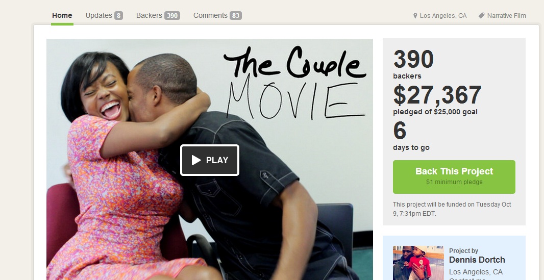 1. The Couple the Movie  Kickstarter Campaign has launched and as of today 03rd October it has exceeded it’s target, but please do go on and back this project if you are one of those who are tired of seeing Tyler Perry-esque movies (I watch them but still want to see more) and also would love to just see more black independent movies, then we think instead of writing up blog posts about your disdain of Tyler Perry or the lack of ‘good content’ support this great project, because sometimes it us the masses who make this change possible by backing creative projects like this .The Campaign still has 6 days to go and your support is still needed.