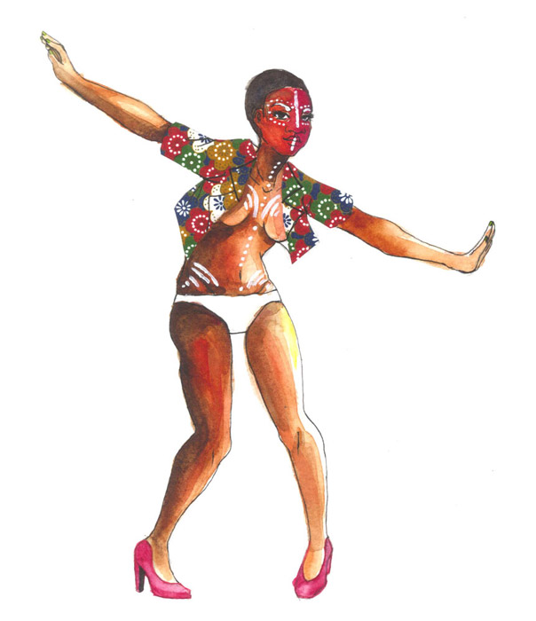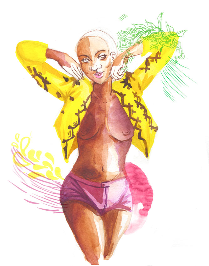 The illustrations used in this article are from Brittnay’s Uzuri series. Uzuri means ‘beauty’ in Swahili. I am very interested in racial identity and femininity. I wanted to create a series of fashion illustrations with women you don’t normally see in the fashion world. This series is about the combination of non-Western ideals of beauty with Western costuming and shown in a fashion editorial light.