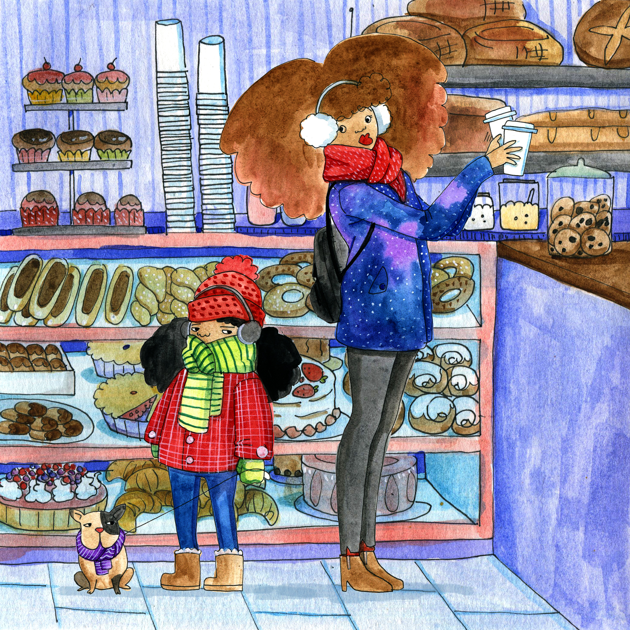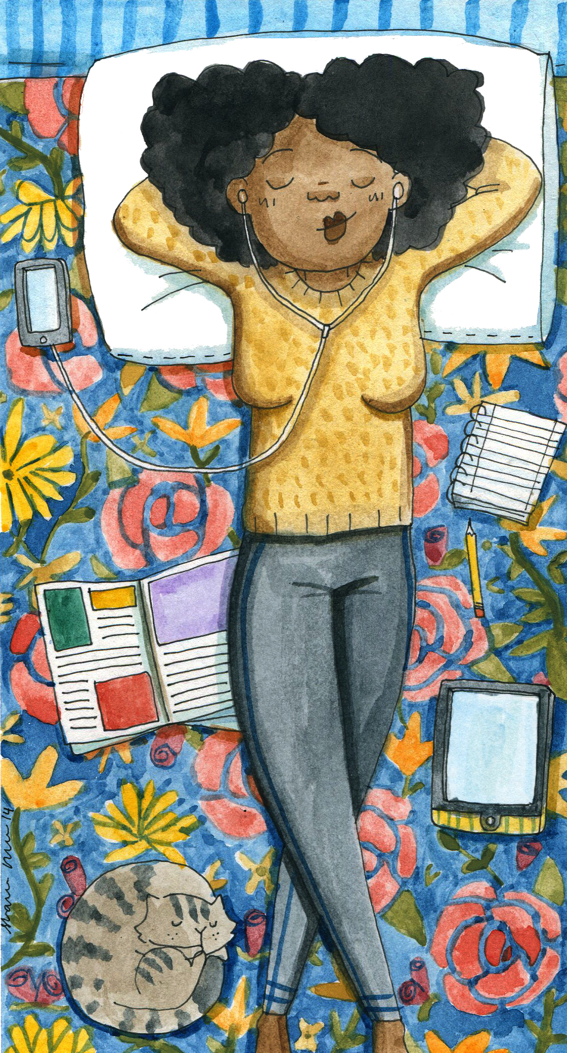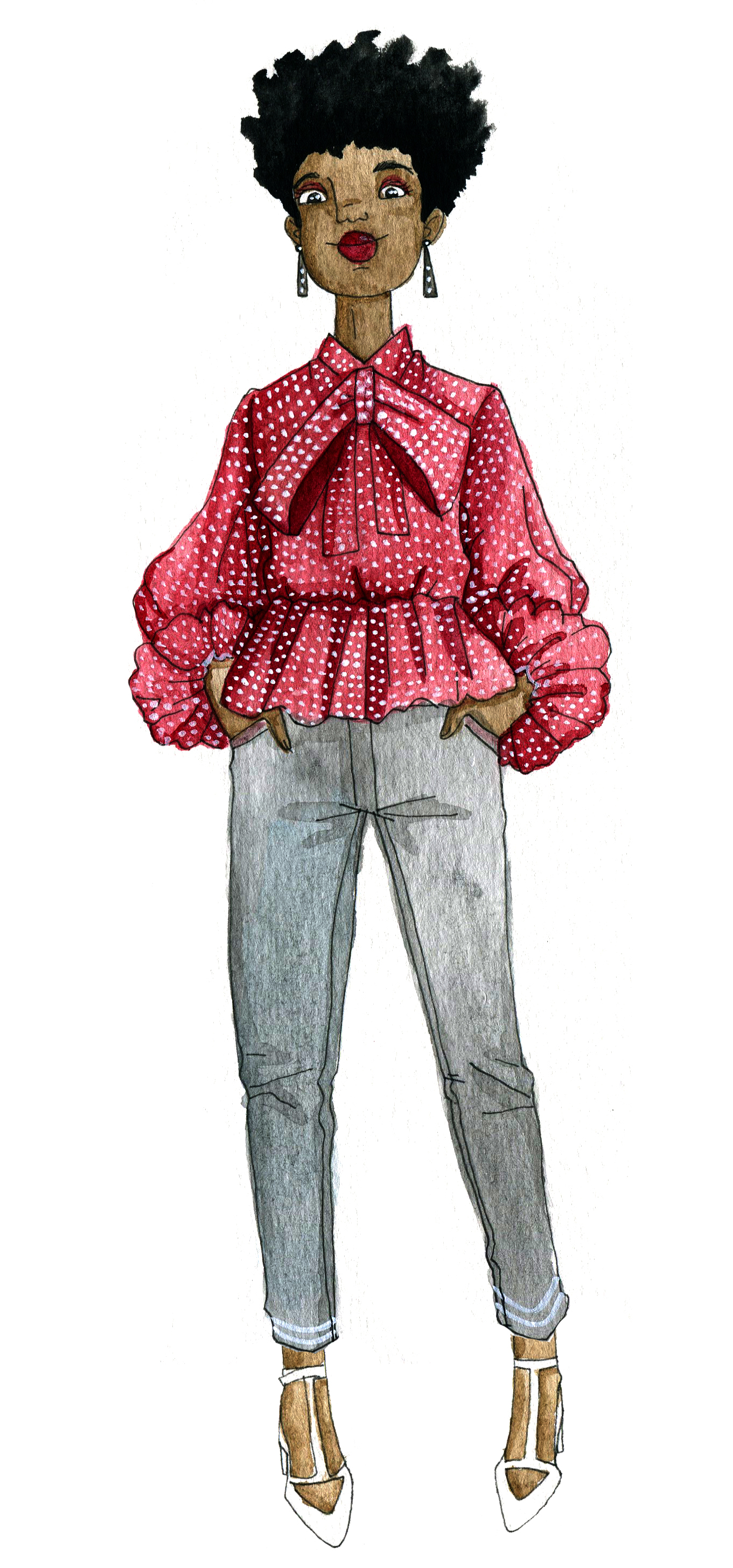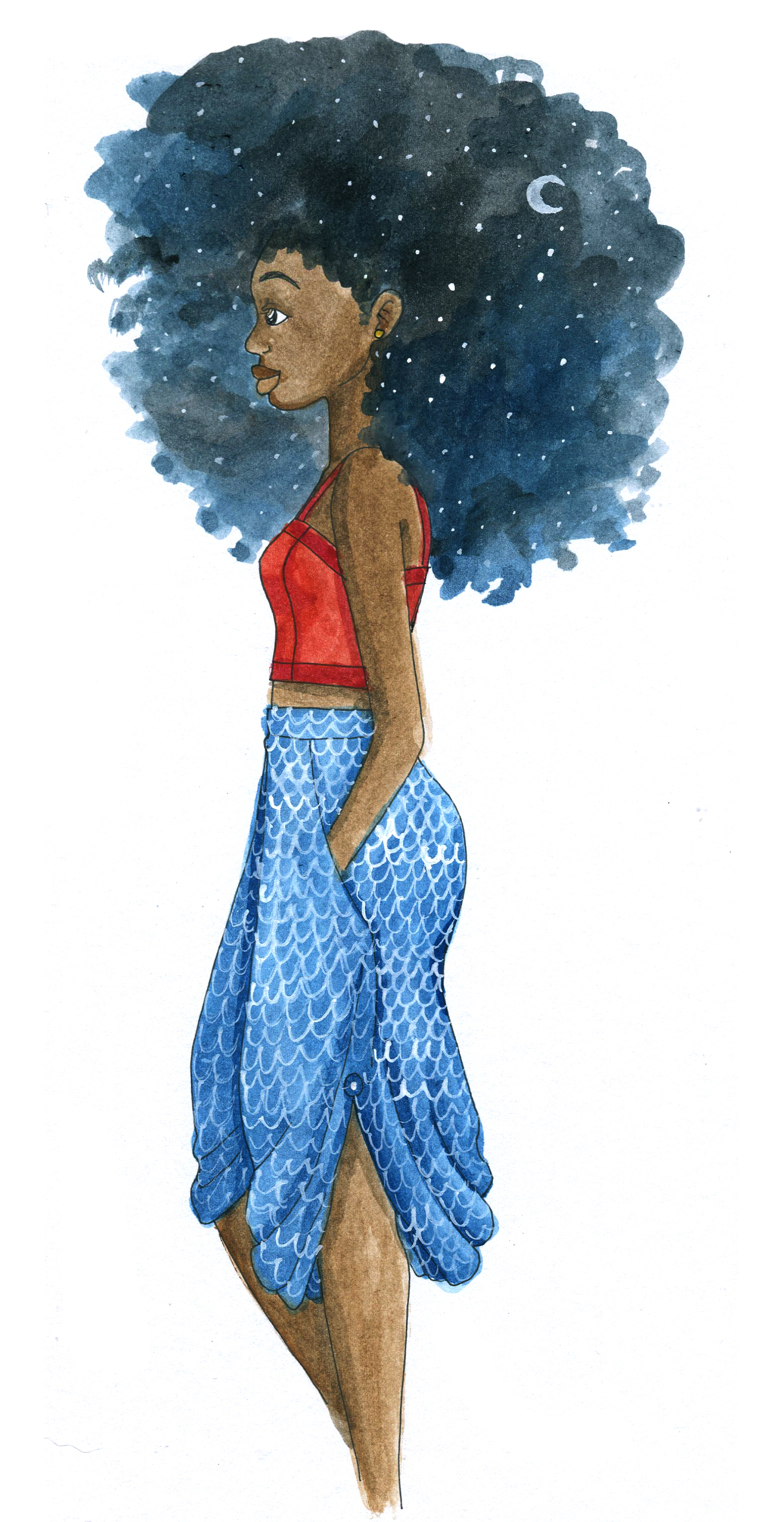 I get most of the humer from my own natural hair experience but I am also inspired everyday by living in New York where the natural hair movement is very prevalent.  I see beautiful and cute things everyday and I just want to draw them. I especially love Pinterest for all the images it has to offer. I just take in fashion and illustration and hairstyles and my mind puts them all together. I like to see something and think what if it were like this or what if it had a pattern or if this idea was pushed to an extreme. I’m constantly writing all these things down so when I get home I can sit down and draw and paint because tomorrow there will be new ideas and experiences.