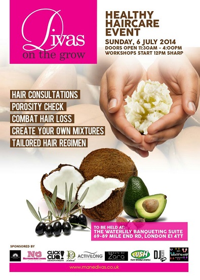 Come along to the launch of Divas on the Grow on Sunday 6th July Hosted by the sassy Ayoki at the prestigious Water Lily banqueting suite where you can experience taster sessions of our NEW mobile healthy hair care workshops offered in London.