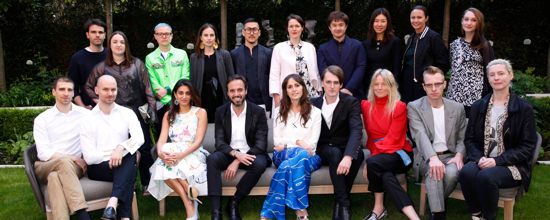 Front, L-R: Levi Palmer & Matthew Harding (palmer//harding), Megha Mittal, José Neves (Farfetch), Tania Fares (BFC Fashion Trust), Gareth Pugh, Luella Bartley (Hillier Bartley), Sid Bryan & Cozette McCreery (Sibling). Back, L-R: Paulo Almeida & Marta Marques (Marques'Almeida), Fyodor Podgomy (Fyodor Golan), Anna Laub (Prism), Eudon Choi, Holly Fulton, Huishan Zhang, Rejina Pyo, Caroline Rush CBE (British Fashion Council), Phoebe English.