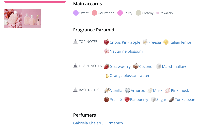 At the core lies the star ingredient: pink marshmallow, its powdery, sugary softness complemented by luscious strawberry and creamy coconut flakes. A whisper of orange blossom water adds a floral sophistication, ensuring the sweetness remains airy and elegant.