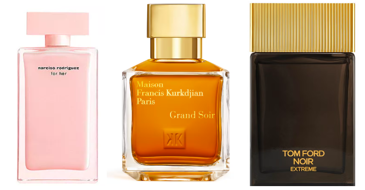• Narciso Rodriguez For Her: A floral-musky masterpiece with rose, peach, and soft musk at its core.