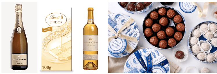 • Tip: Look for white chocolate infused with vanilla or citrus zest to highlight Champagne’s bright, zesty notes.