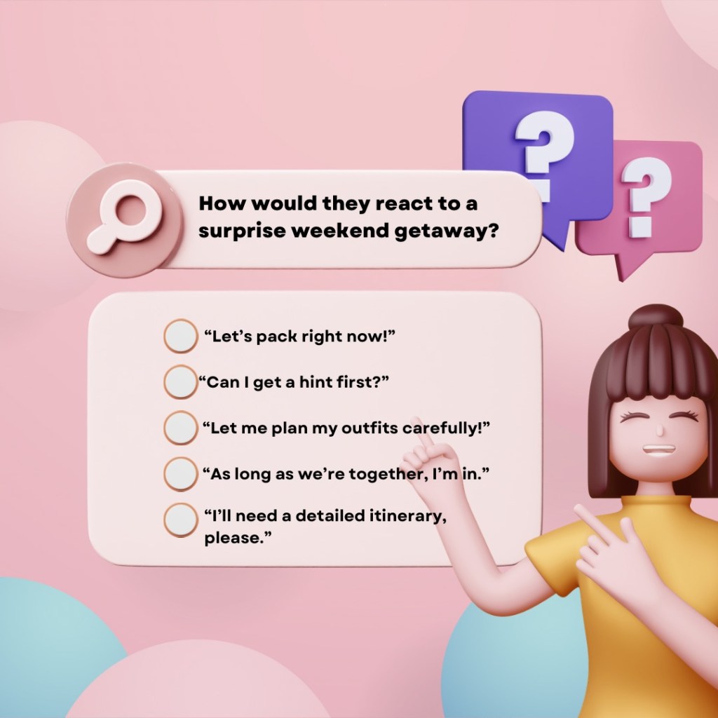 Enjoy this fun,playful partner quiz. The Answers are A – E (top to bottom)! Do let us know if you enjoyed the quiz and if the responses are close to spot on! Remember its all in good fun!