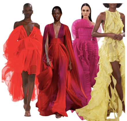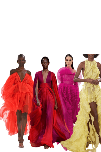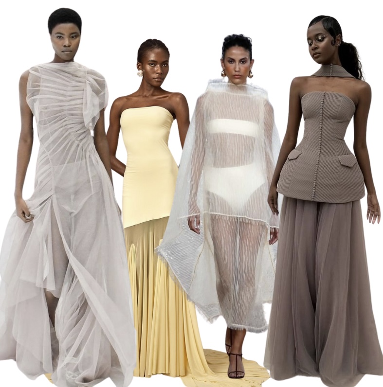 Light as air, tulle takes centre stage in dresses that flirt with volume and shadow. Some are minimalist and body skimming, others bloom into ballerina-esque proportions. What they share is a sense of vulnerability not weakness, but power in softness. Pair with flesh toned underpinnings or intentionally contrast with opaque lingerie for a bolder look.