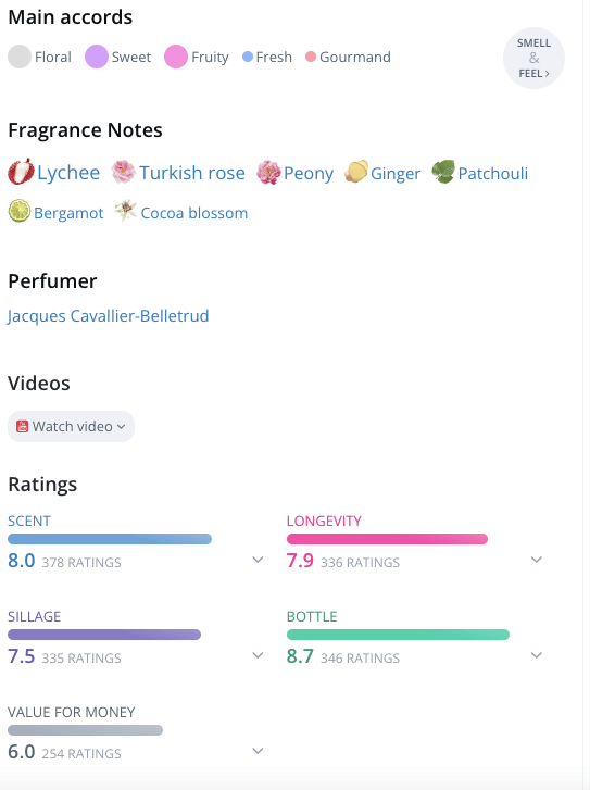 But the magic lies in the heart and base. There, a duet of peony and Turkish rose adds soft femininity and dewy freshness, but it’s the raw cocoa powder; dry, chocolatey, powdery that twists the floral bouquet into something unexpected. It’s not gourmand in the edible, sugary sense, but rather evokes texture, like a veil of velvet over bare skin.