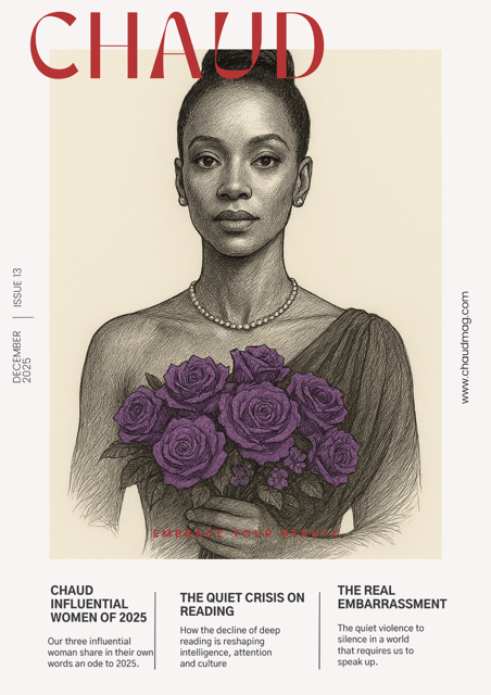 December always arrives with a particular weight. It asks us to look back honestly, to sit with what was beautiful, what was bruising, and what quietly reshaped us. This issue, our final one of the year, carries even more meaning. It marks one full year of Chaud Magazine. One year of believing that thoughtful storytelling, cultural depth, and intelligent joy still matter.
