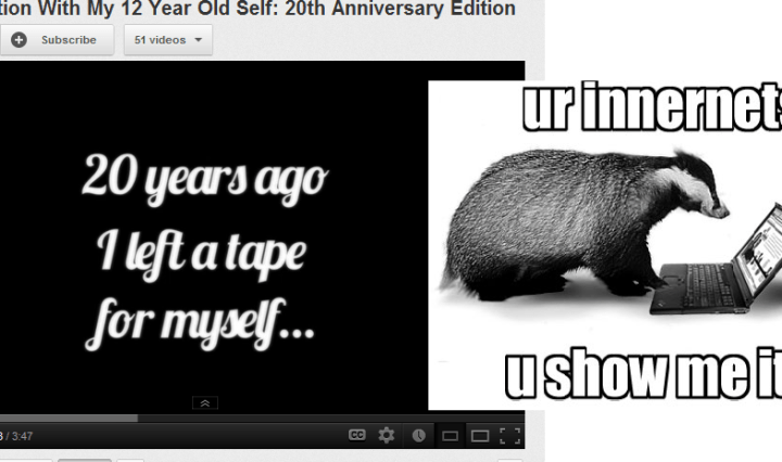 This video is what we call genius and made us wonder how conversations with our 12 year old selves would go. I know mine would definitely be disappointed that I do not live in Mauritius or Switzerland  that is for … Continue reading Innernet videos/Webisodes et al